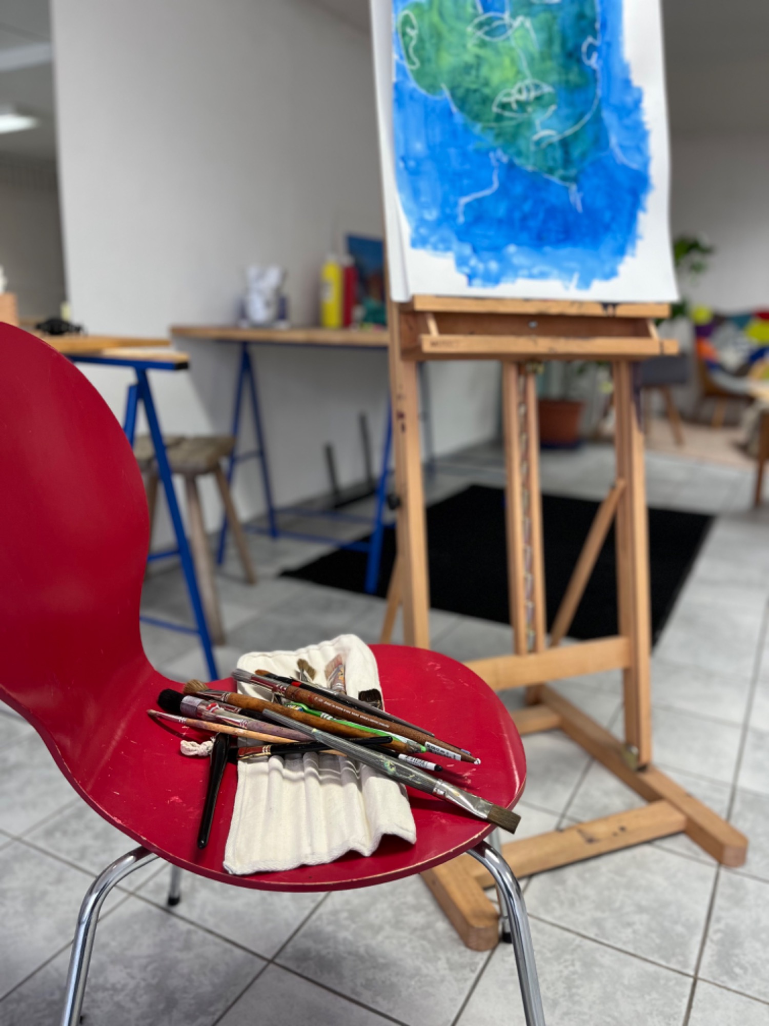 Im offenen Atelier können Sie in entspannter Atmosphäre malen, zeichnen oder gestalten – ohne Vorgaben, aber mit Begleitung, wenn gewünscht.